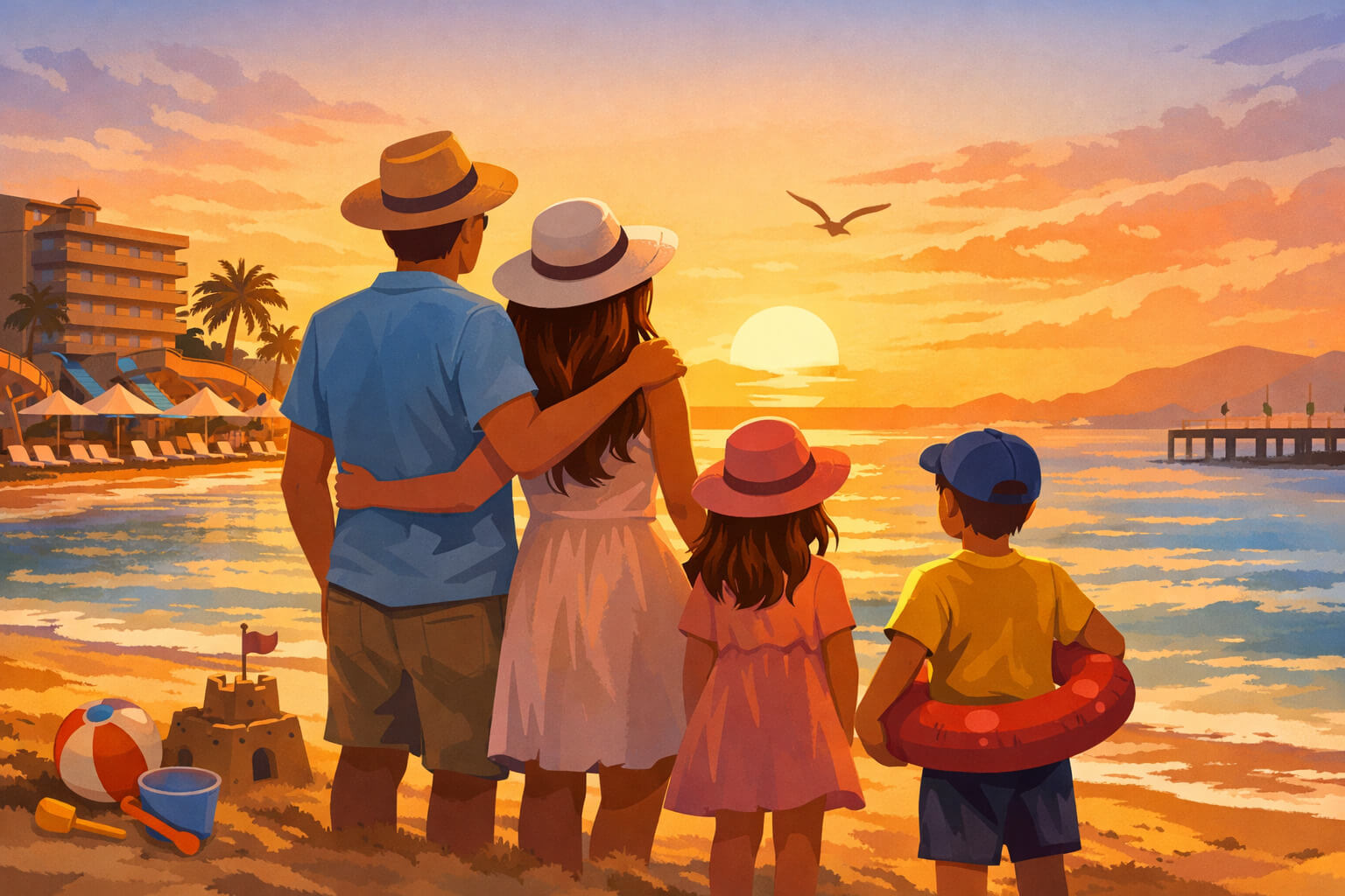 Există și varianta resorturilor mai mari, ușor în afara centrului, unde hotelul e practic o mică lume închisă. Acolo ai mai multe șanse să găsești spații largi, activități organizate, tobogane, uneori plajă privată. Pentru o familie cu mai mulți copii, un resort de tipul ăsta poate fi o binecuvântare, pentru că nu te mai împarți între „unde mâncăm” și „ce facem după”. În schimb, ieșirile în oraș se simt ca o expediție, mai ales când unul e deja obosit.