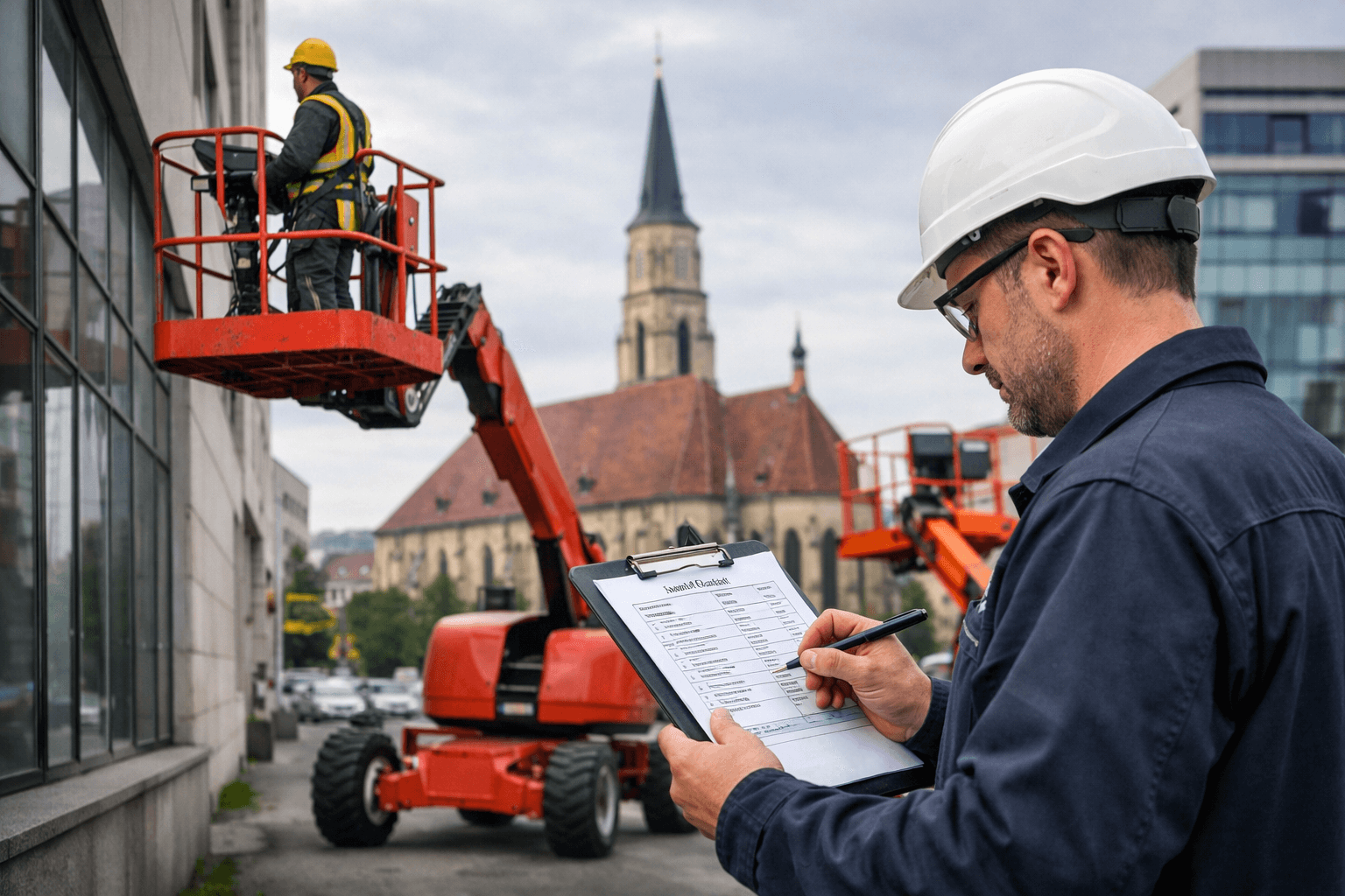 Dacă închiriezi „fără operator”, teoretic tu manevrezi utilajul. Practic, asta înseamnă că omul care urcă pe platformă trebuie să știe ce face, să înțeleagă limitele utilajului și să știe să coboare în siguranță când apare o problemă. Unele firme îți cer dovada instruirii, altele doar îți fac un instructaj scurt la predare.
