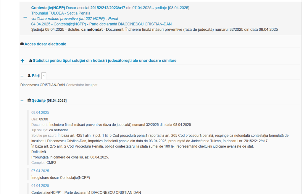 Dosarul „Sex cu minore” asociat cu Dan Diaconescu se află într-o situație de imobilizare la Tulcea, fără evoluții semnificative în ultimele 11 luni. În ciuda speranțelor de avansare a investigațiilor și audierilor, autoritățile locale nu au reușit să prezinte noi dovezi sau să stabilească un plan clar pentru desfășurarea procesului. Dificultățile birocratice și insuficiența de resurse par a fi cele mai mari obstacole în calea progresului cazului. De asemenea, există o lipsă de coordonare între diferitele instituții implicate, ceea ce contribuie la întârzierea procesului. Această situație a provocat nemulțumiri în rândul publicului și al părților interesate, care așteaptă de mult o soluție a cazului. În absența unor progrese concrete, dosarul riscă să rămână suspendat pe o durată nedeterminată, fără perspective clare de încheiere. Această imobilizare ridică întrebări cu privire la eficiența sistemului judiciar în gestionarea cazurilor complexe și sensibile.